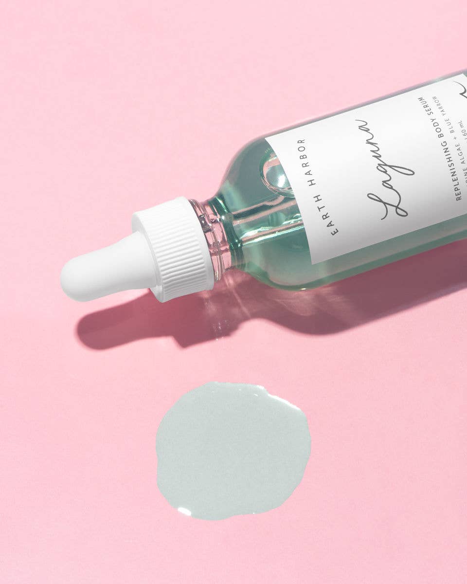 A bottle of glistening maritime bliss, LAGUNA Replenishing Body Serum is a tantalizing blend of pure botanical oils, including Blue Yarrow, Marine Algae, Coconut, Rosehip, and Neroli Blossoms. Her synergistic island blend promotes the process of cellular respiration and intercellular energy, while delivering deep nourishment, hydration, and a gorgeous luster to your sweet skin. Enjoy her exquisite aroma as your skin absorbs this beautiful, non-greasy, nutrient-dense serum.