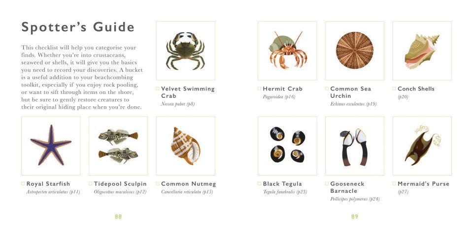 This illustrated guide introduces coastal wildlife, featuring 40 species such as pebbles, shells, crabs, and small sea creatures. Each entry is delicately illustrated to highlight the unique characteristics of each creature, along with interesting facts and fables. The guide includes an interactive spotter's section, allowing readers to track their discoveries. Perfect for outdoor exploration, it encourages creativity and learning for both adults and children.